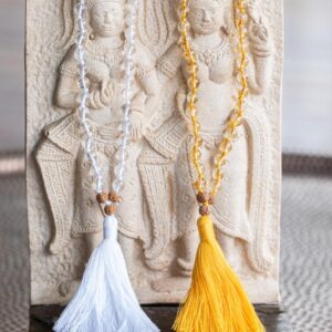 Mala Beads may be worn as a piece of sacred jewellery or to enhance your meditation and prayer practice. Traditionally designed for mantra recitation, Mala beads help you focus on the essence of your mantra, promoting a deeper meditative experience. Each bead signifies a repetition, allowing you to seamlessly count the 108 beads without distraction.